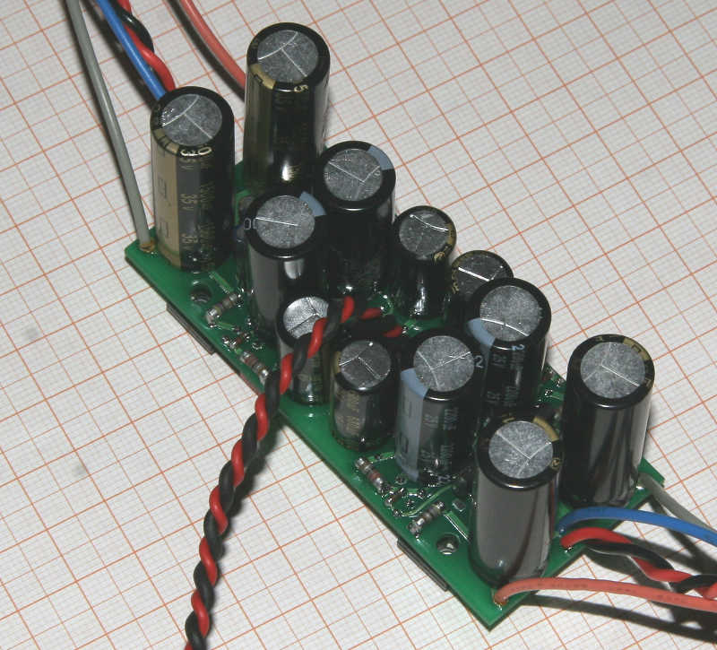 4. Размещение основных силовых емкостей фильтра после стабилизаторов (в питании ВК установлено 20000 мкФ до стабов и 160000 мкФ после них)