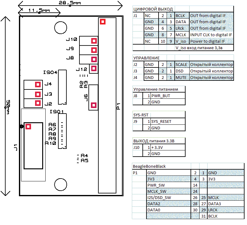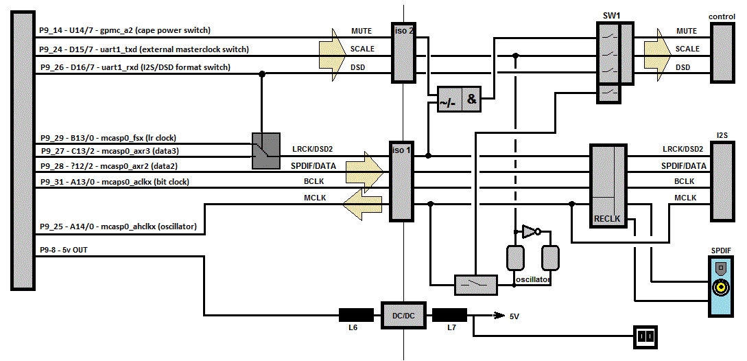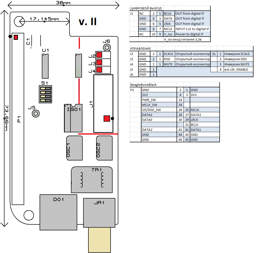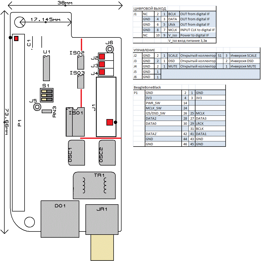 Переходник предназначен для сопряжения и гальванической развязки по шине i2s BBB и ЦАП, а так-же вьівода SPDIF сигнала на RCA и TOSLINK.