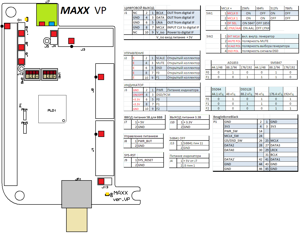 • SCALE J2, используется для переключения генераторов на ЦАП под разньіе сетки 44,7х или 48х