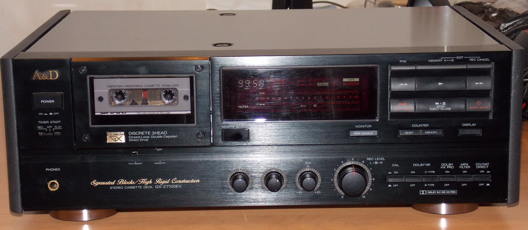 На мой взгляд, деки от A&D по звуку несколько отличаются от Акаi, хоть и построены на их базе и с использованием головок Super GX. Я на своей Z9100 тоже сравнивал режимы вход/выход при записи - практически не отличимо от CD по частотному диапазону, выдают только шумы ленты (тоже не признаю всякие компандеры) и потеря глубины сцены (при условии ее наличия на оригинальной записи!). Насчет эмоциональных потерь - согласен полностью. Добавлю, что у меня еще возникают ощущения потери "живости" при записи с винила, появляется ощущение цифры. По крайней мере, из всех дек, которые были у меня до этого и есть сейчас, A&D уступила только 700ZXE от Накамичи (с другими моделями Накамичи сравнить не могу).