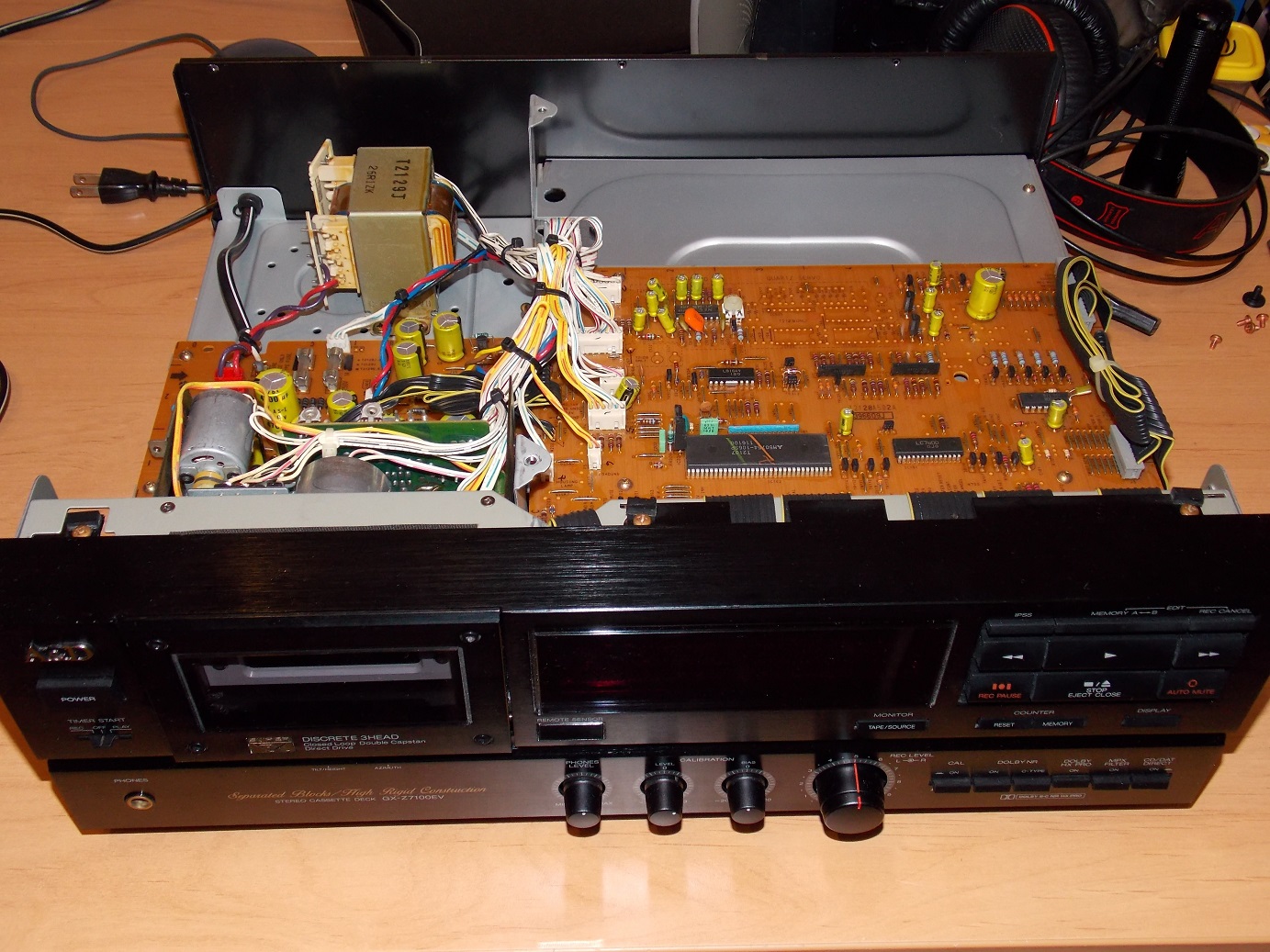 Основные регулировки внутри раздельные для всех типов лент - ток записи и ток подмагничивания так можно выставить гораздо точнее. Сервис мануала к ним я не нашел, но на платах все регуляторы подписаны, поэтому с настройками проблем не возникло.