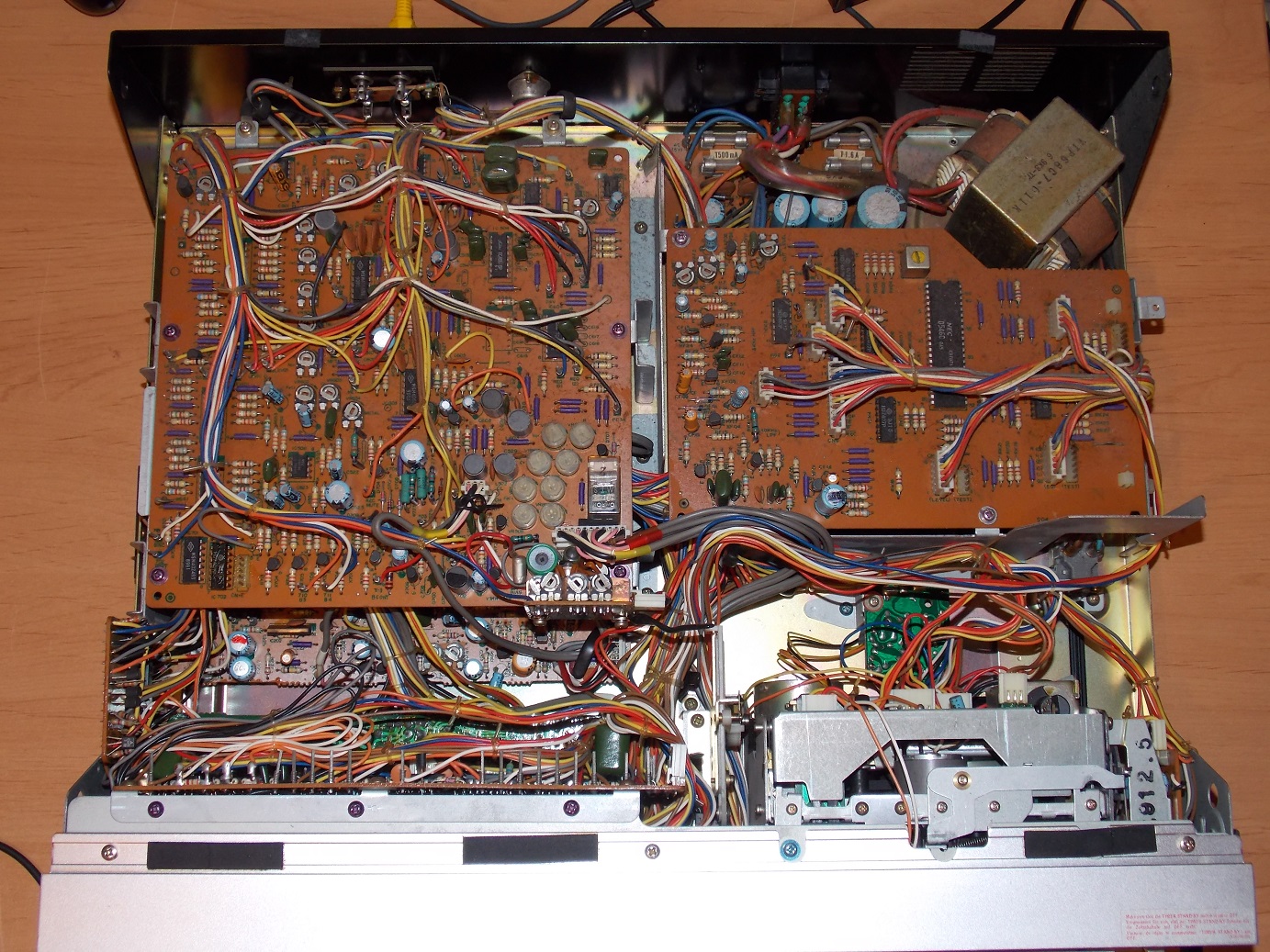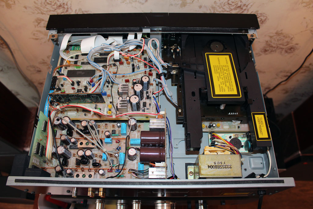 Вертак времён Царя Гороха, имеет на борту мраморное шасси, бесколлекторный двигатель привода шпинделя, линейный двигатель пикапа KSS-123 со стеклянной линзой, раздельное питание анологовой, цифровой, и т.д., всего пять раздельных источников, питаемых от раздельных обмоток трансформатора, пассивный LPF, 2 Х PCM56P-K, выхлоп на ОУ 5532 с интегратором, естно разделиттельный конденсатор на выходе... да нет его, никаких транзисторных ключей, только реле, короче хиэнд!!!