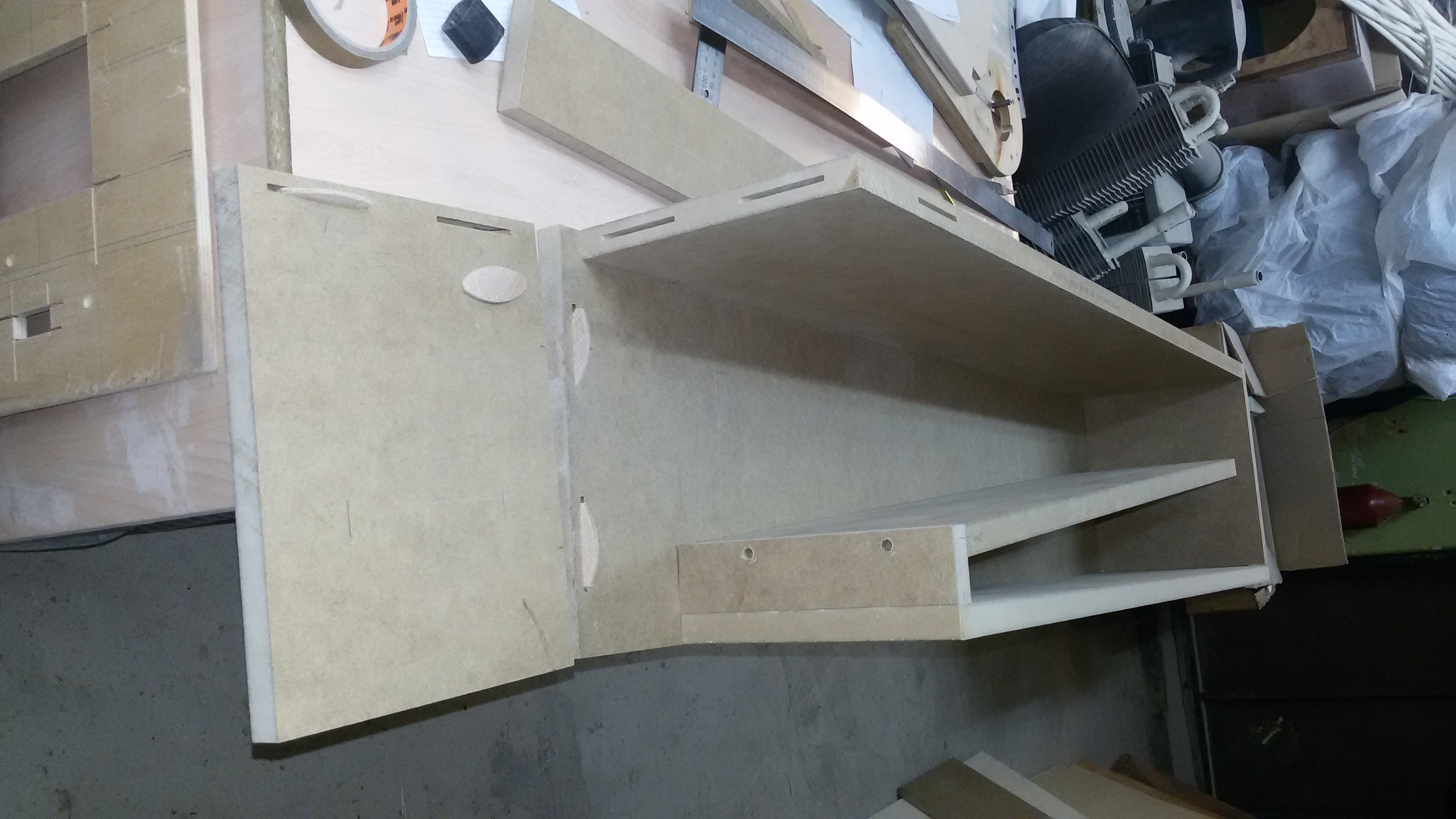 А там нечего шпатлевать. После склейки нужно только шлифмашинкой убрать излишки клея, который выступил из швов. Вообще я с МДФ работаю очень редко. Можно сказать, что совсем не работаю. Предпочитаю березовую фанеру.