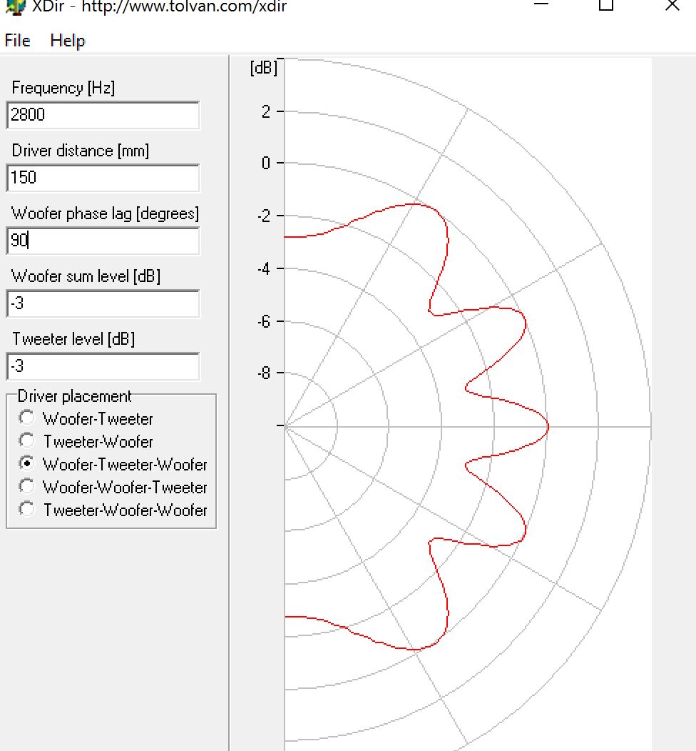 Если делать фильтры 3-го порядка, то можно сделать 90 градусов между твитером и мидвуфером.