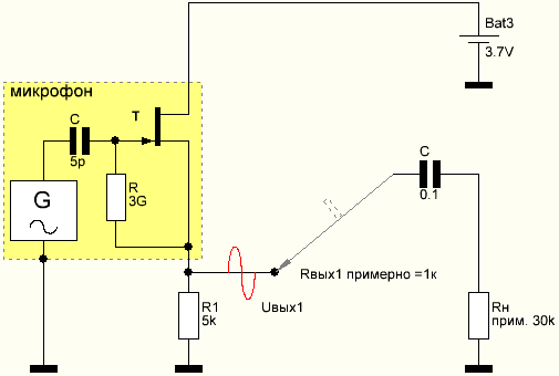 Вместо Линквица собрал микрофон с резистором в истоке и нагрузкой в стоке.