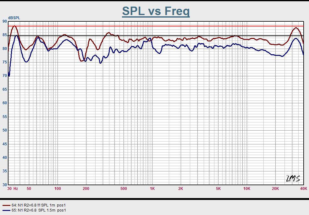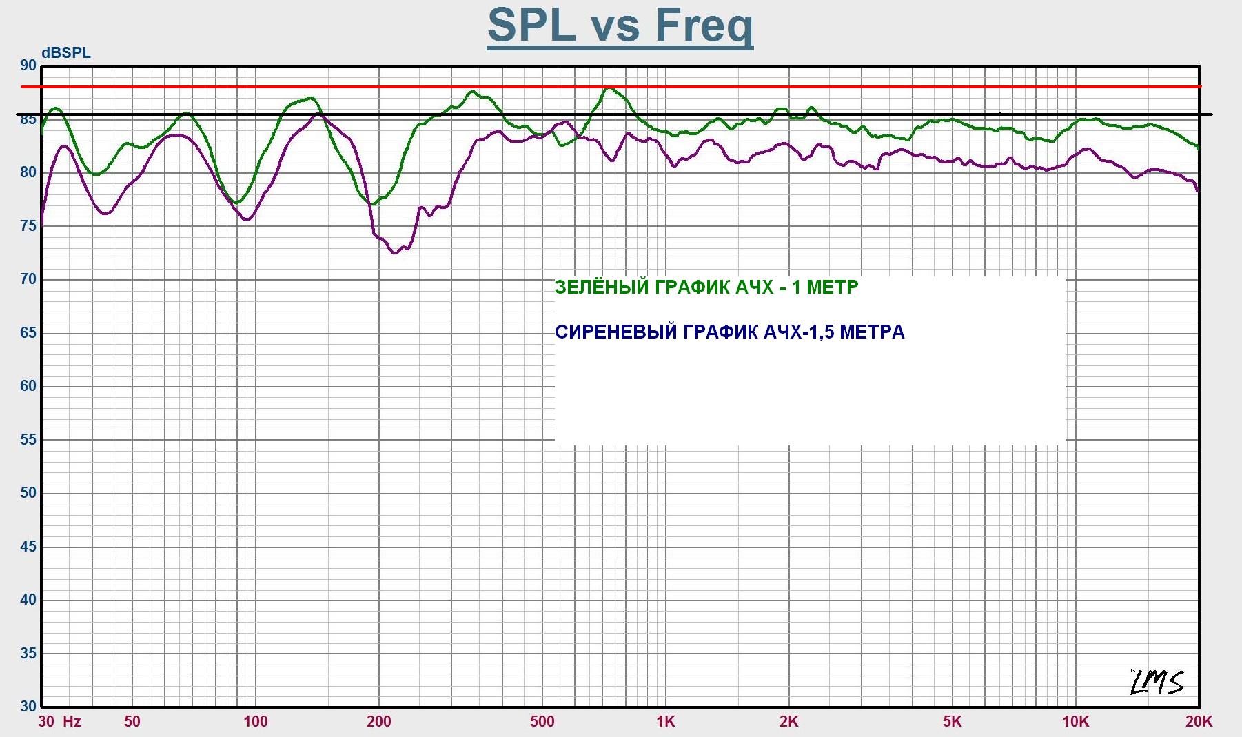 Давайте разберём измерения в 1.5 метра: Пики ушли - НО Отношение диапазона 1кГц-20кГц к максимальному SPL системы минус 3дБ.