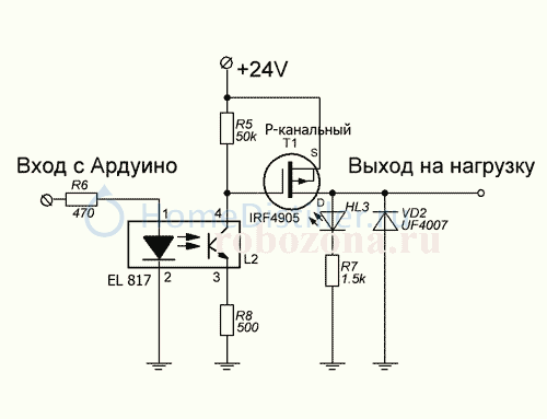 Транзистору IRF4905 поплохеет от напряжения затвор-исток 24 В. Как минимум, R8 надо увеличить. Как максимум, добавить стабилитрон.