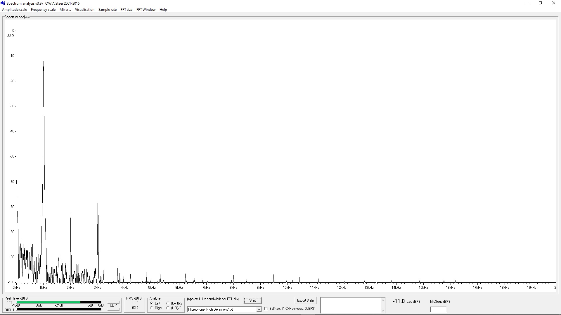 Итак начнем. Прежде всего необходимо наладить адекватную методику измерений. В качестве основного регистрирующего инструмента обычно используется звуковая карта компьютера. Ее целесообразно протестировать источником сигнала заведомо лишенным ВЧ помех. В качестве такового я использовал звуковой генератор Г3-118.