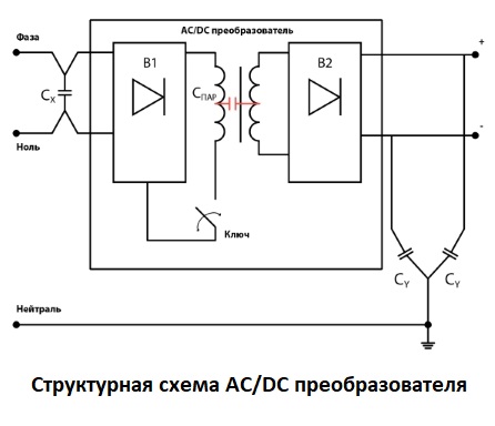 Емкостной делитель со средней точкой соединенной с корпусом и контактом РЕ сетевой вилки, для подавления помех стоит во многих устройствах. Как то на работе привезли осциллографы АКИП у которых был этот емкостной делитель соединенный с контактом РЕ сетевой вилки. И почему то еще с контактом РЕ сетевой вилки был соединен общий провод входного разъема канала Y. Если этот осциллограф включить в двухпроводную сеть ~220 В и начать тыкать щупом в плату с микросхемами у которых общий контакт питания заземлен (соединен с РЕ), то микросхема сгорает. Потом это дело исправили. В следующей партии осциллографов общий провод входного разъема не имел связи с корпусом.