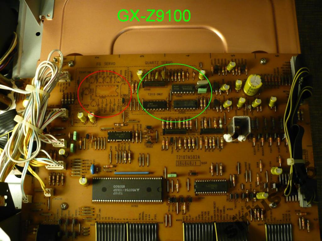 У меня вот такие вот фото есть- я так понимаю 9100 и 95 на той же плате сделаны- добавлены омеднённое шасси, колпак на трансформатор от наводок и другие микросхемы долби с обвязкой как я понимаю....., а вот EX и EV видимо отличаются. В блоке питания тоже видны отличия......