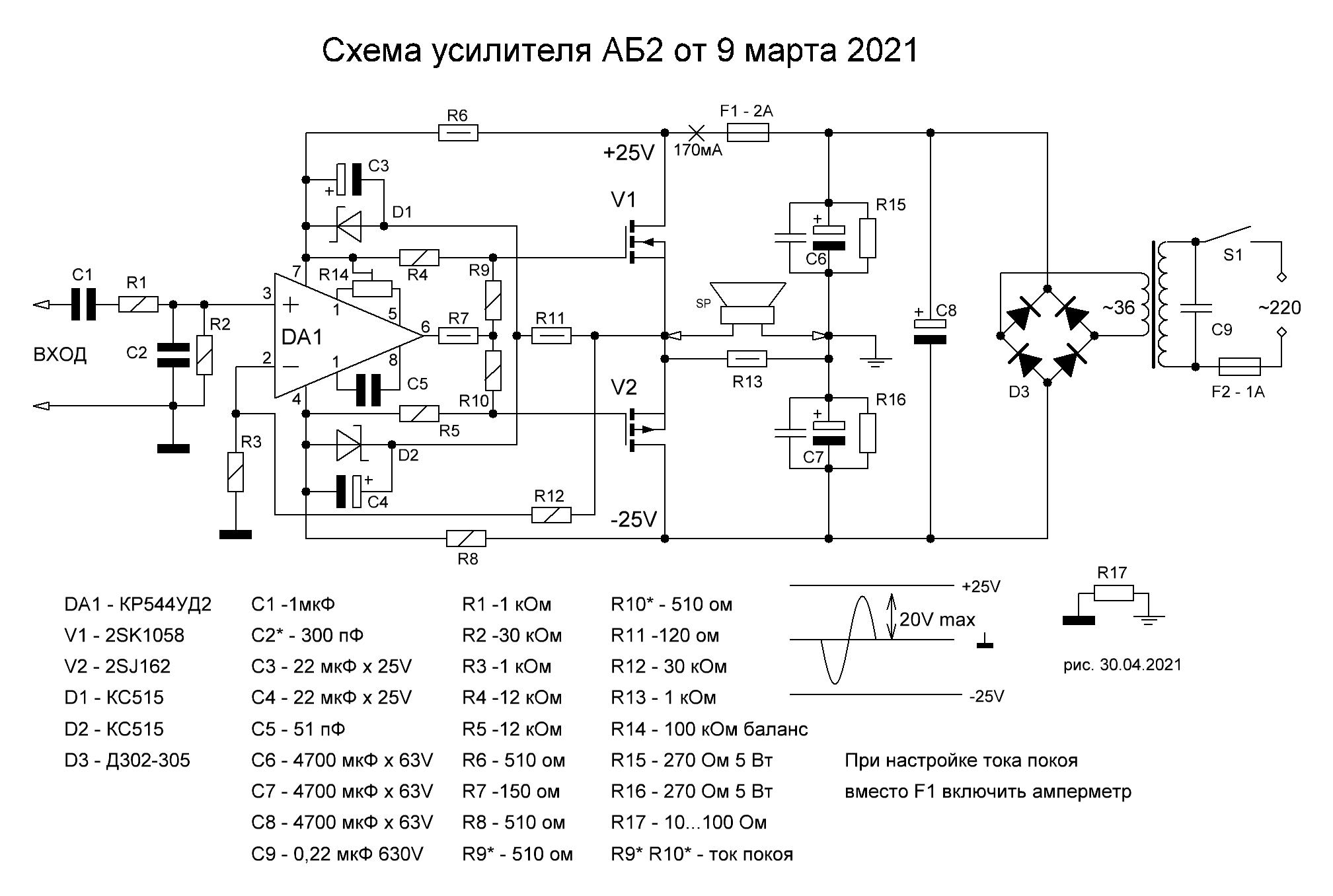 Для таких усилителей следует описывать требования к блоку питания.