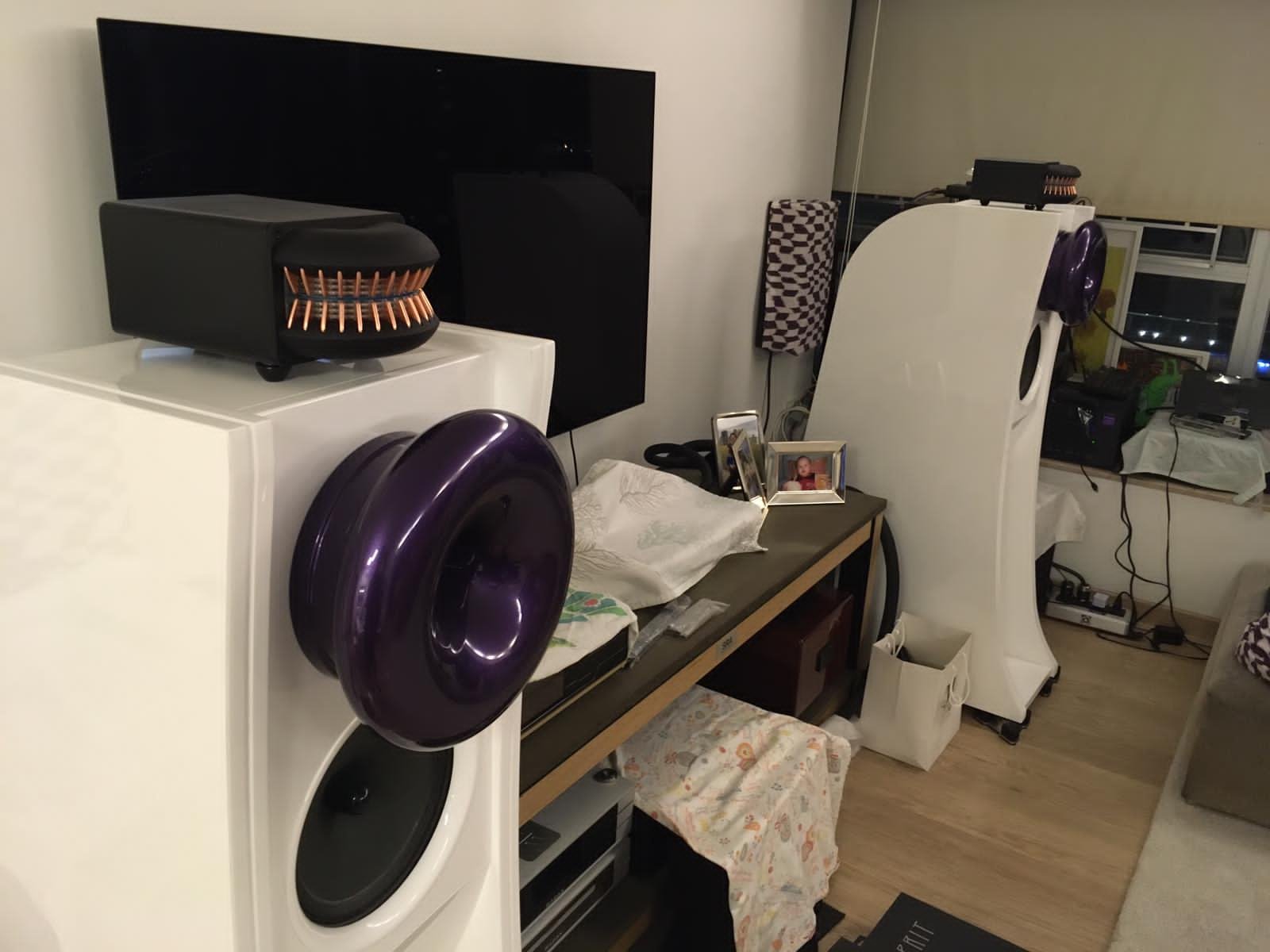 С пищалками нужен именно равномерный круг. Желательно, с преобладанием заднего излучения. А вот следующую вниз полосу можно из моих любимых бесфланцевых 76 мм купольников набрать. По 12 шт на канал, две "гайки" дапполитно.