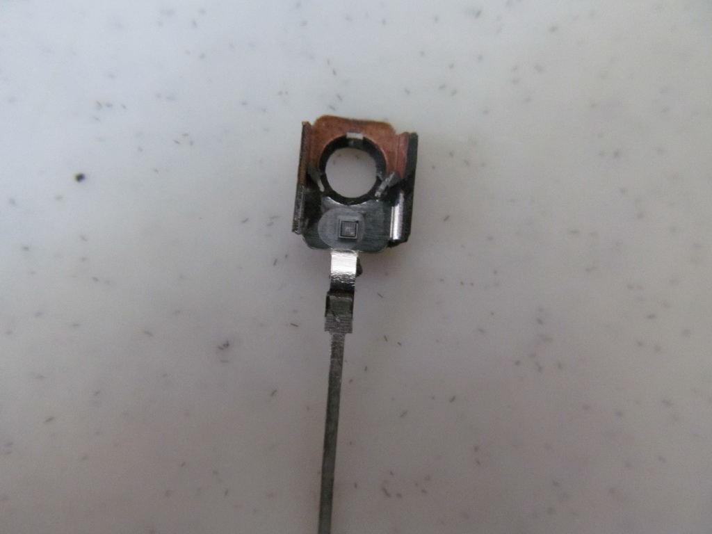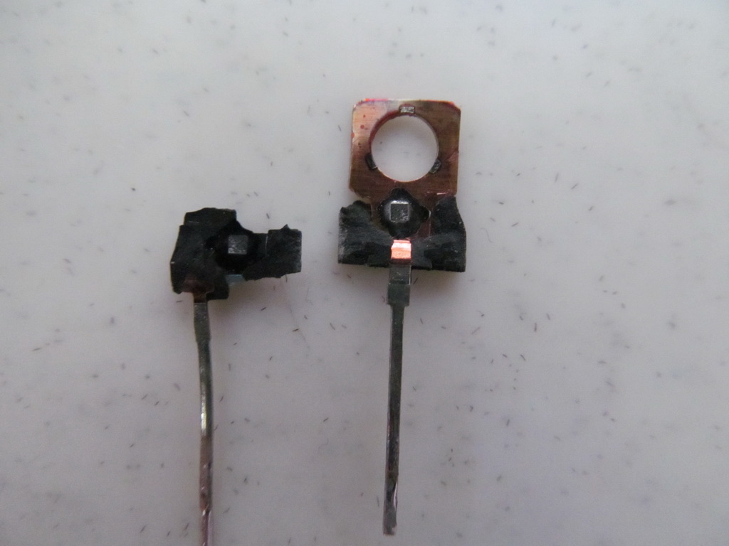 Интересный момент, несмотря на то, что наши транзисторы кт815 и 817 одного года но у КТ815 треть внутренней поверхности покрыта серебром, а у КТ817 вся внутренняя поверхность. А вот китайцы на медь кристалл припаяли и все.