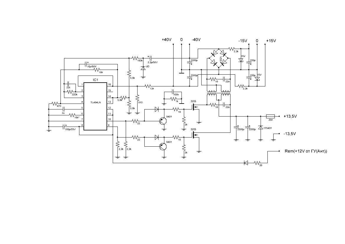 на мой взгляд, питание на среднюю точку трансформатора должно браться до резистора в 10 Ом, что после дросселя стоит иначе он пыхнет мама не горюй))))
