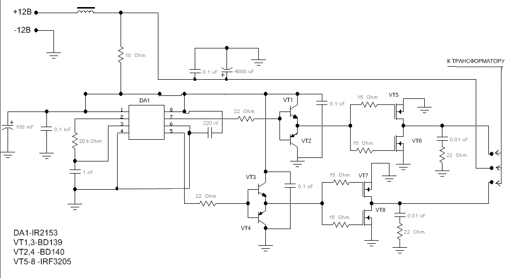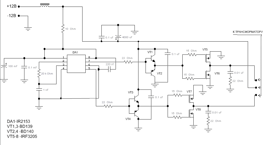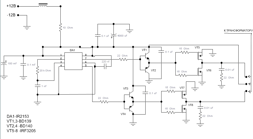да, совершенно правильное замечание. я сразу не обратил внимание. питание трансформатора и драйверов - до резистора 10 Ом. после резистора - только питание микросхемы.