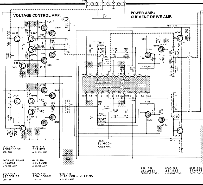 Чет сдается мне, часть схемы обозначенная как Voltage control amp, это все к усилителю мощности относится. Питание там все еще высокое.
