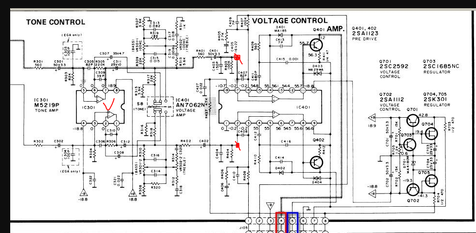 Иван555, я понял. Снимать сигнал сразу с выхода платы тонкомпесации, а не с разъёма ТР1 и ТР2.Нажмите на изображение для увеличения.