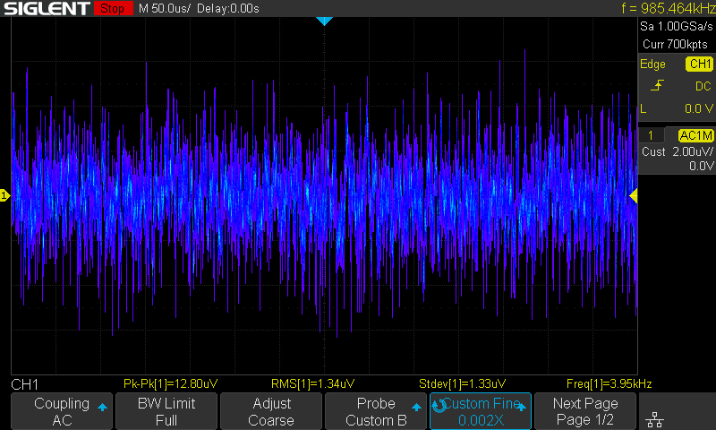 Ниже сравнения шумов 1054 (предел 5мВ) и 804 (предел 1мВ)