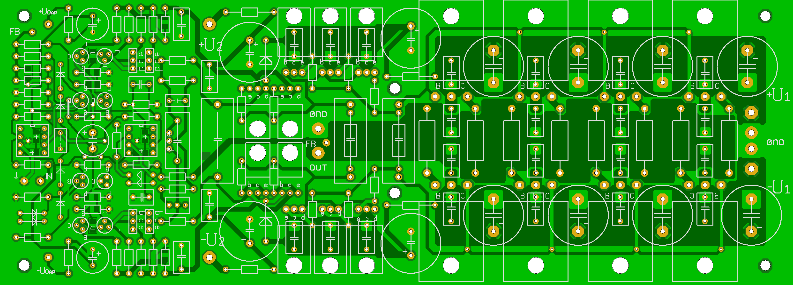 Максим,мне не нравятся дырки под винты крепления транзисторов.Может лучше крепеж вынести за пределы платы?