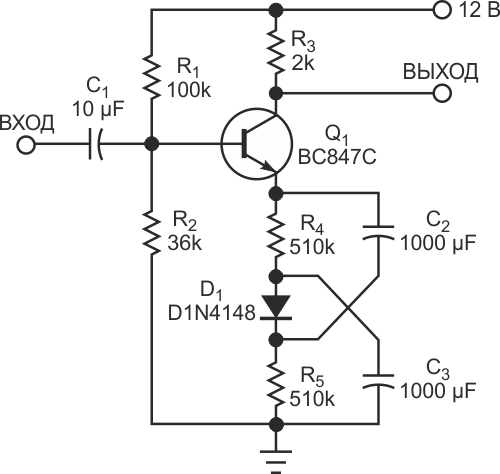 Диод компенсирует нелинейность усилительного каскада http://www.rlocman.ru/shem/schematics.html?di=449525