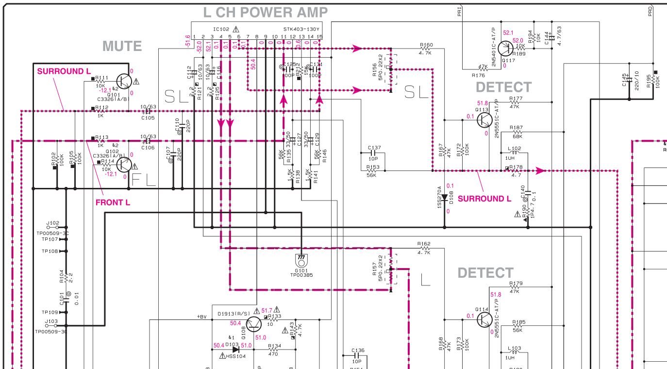 Добрый день! Помогите пожалуйста советом. У меня в ресивере Ямаха, собранном на STK403-130Y "испортился" левый тыловой канал - в нём шум типа громкого шороха с очень частыми непрерывными и неравномерными всплесками. Громкость всего этого по ощущениям максимальная или близка к ней. Регулятор громкости и режим MUTE никак на это не влияют. Я не специалист и единственное, что попробовал - вход этого канала на землю. Никак не повлияло. Второй канал фронтальный левый в этой же STK работает нормально. Это одному каналу STK конец пришёл или другие причины могут быть? И ещё вопрос на возможное будущее - можно ли вообще отключить неисправный канал STK и как это сделать?