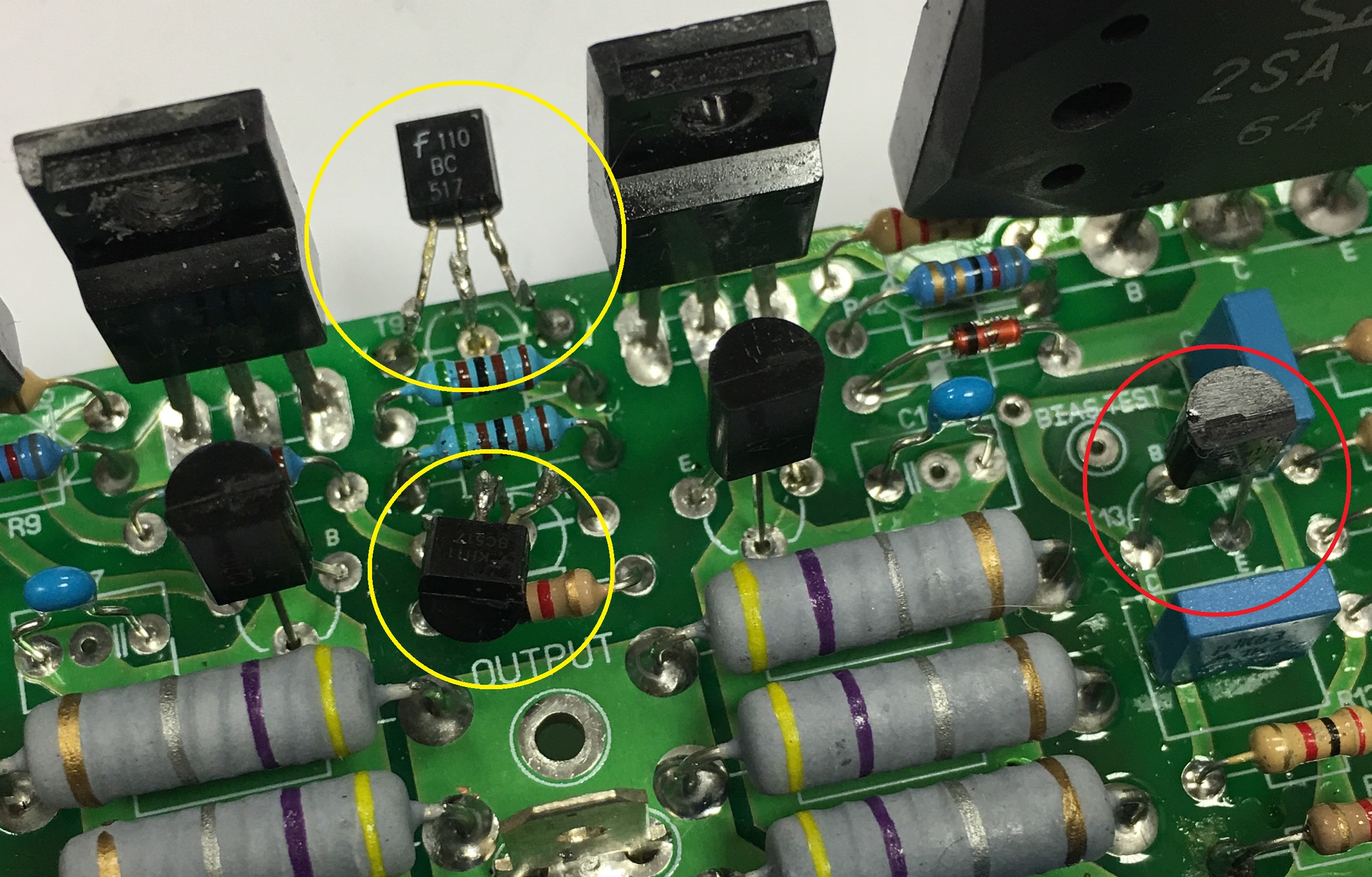 vt2, vt3 проверьте. Vt2 должен быть 2sa970, vt3 - 2sc2240