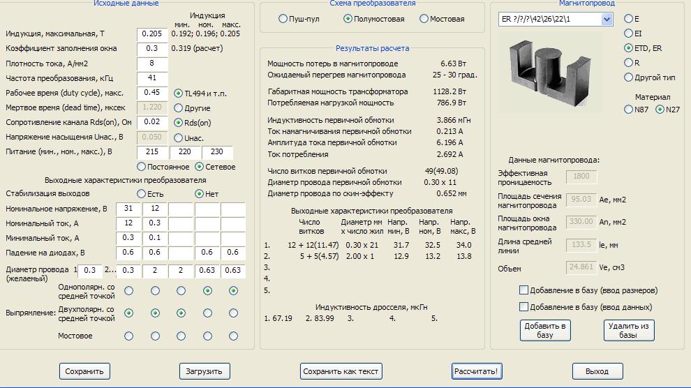 вот и я написал, что сомневаюсь в параметрах сердечника. и к тому же 330 мм2 площадь окна, почти, как у ETD59!!!