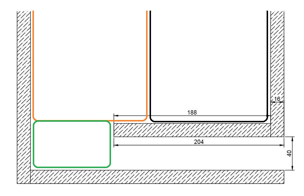 3. Там где синтепон подходит к фазоинвертору, нужно его довести до "дна" - зеленый уровень на рисунке или остановиться на оранжевом уровне?