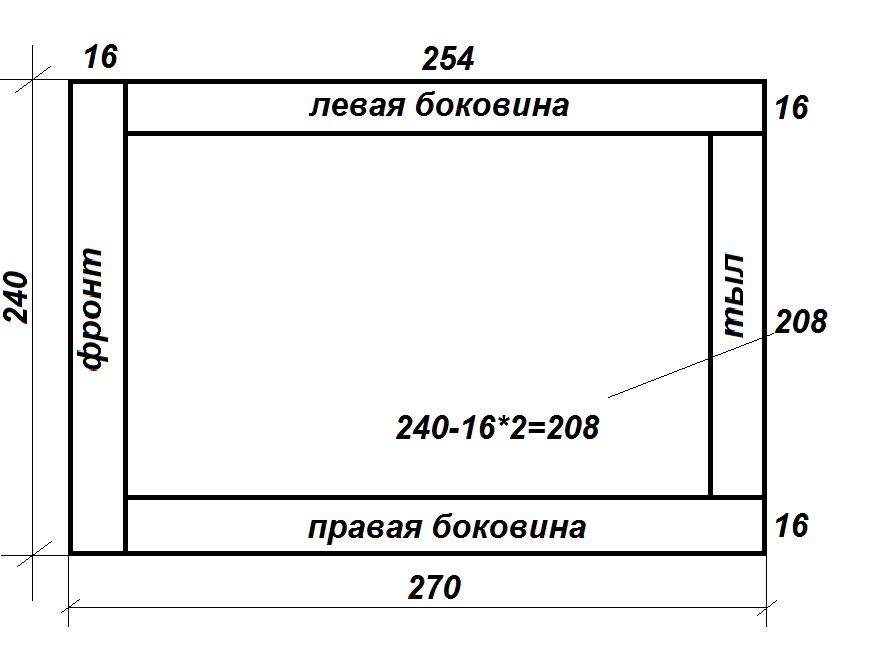 - толщина 2х боковин 16+16=32мм