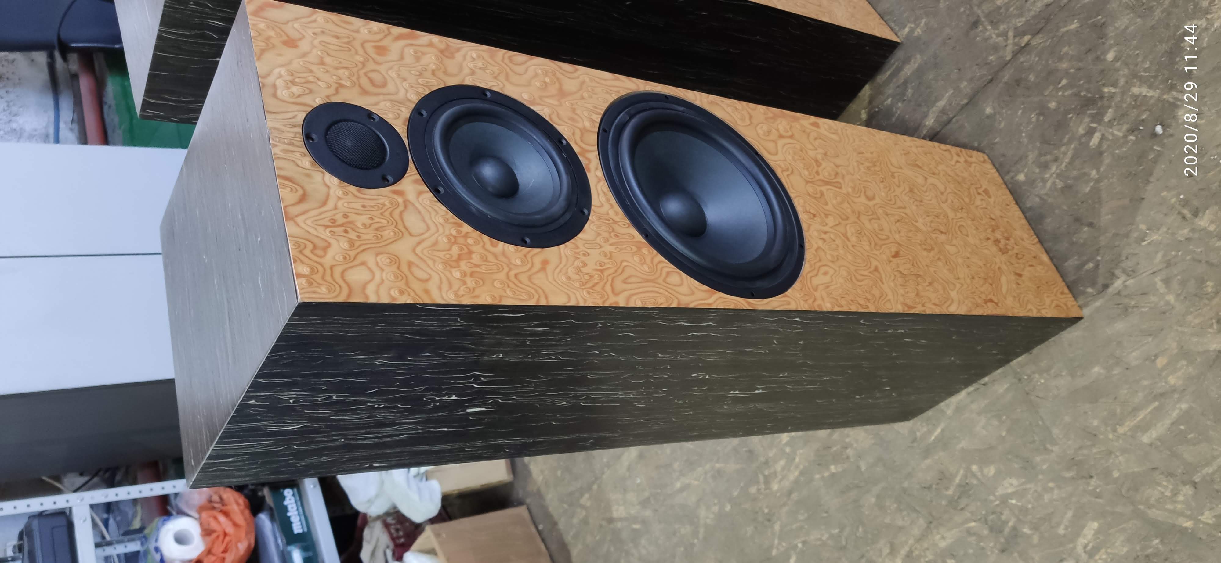 В акустических системах применены динамики производства Асалаб (Калуга). Бумажные НЧ и СЧ динамики, 8 и 5 дюймов соответственно, и шелковый дюймовый высокочастотный динамик.