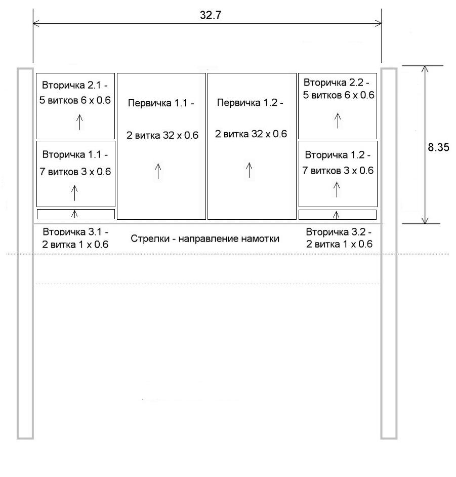 VVS продевал вторичные провода через 20-е кольцо, каждый провод отдельно в своё кольцо, причём он это проделывал со старыми источниками , как это соотносится с разным временем обратного восстановления я не понял , может у него диоды одни и те же везде были .