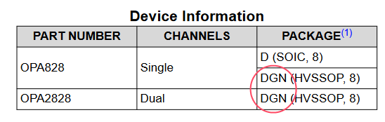 То глюки, смотрите сами в даташит, а он и на https://www.mouser.com/c/?q=opa2828 и на https://www.mouser.com/c/?q=opa828