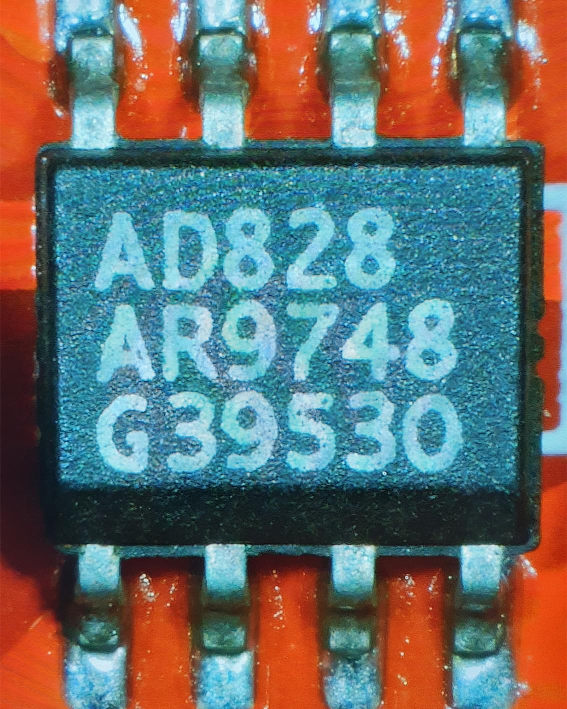 боюсь, строго утверждать без дополнительного изучения, никто не возьмётся. Я нашёл паянные 828 маркированные похожим образом(на таобао2 по 2.8 юаня/шт, видимо опять с утилизированной техники), но там краска, тогда как на вашей картинке лазер. На моих 100.00% настоящих AD8397, в том месте, где китаец заблюрил, размещено лого AD.