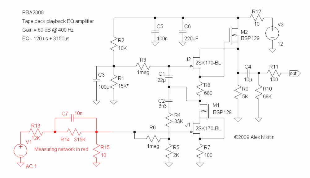 При работе с ферритовой головкой можно поменять полярность всех транзисторов и вместо q1 поставить что-нибудь типа 2sc3113BL или 2sd2144.