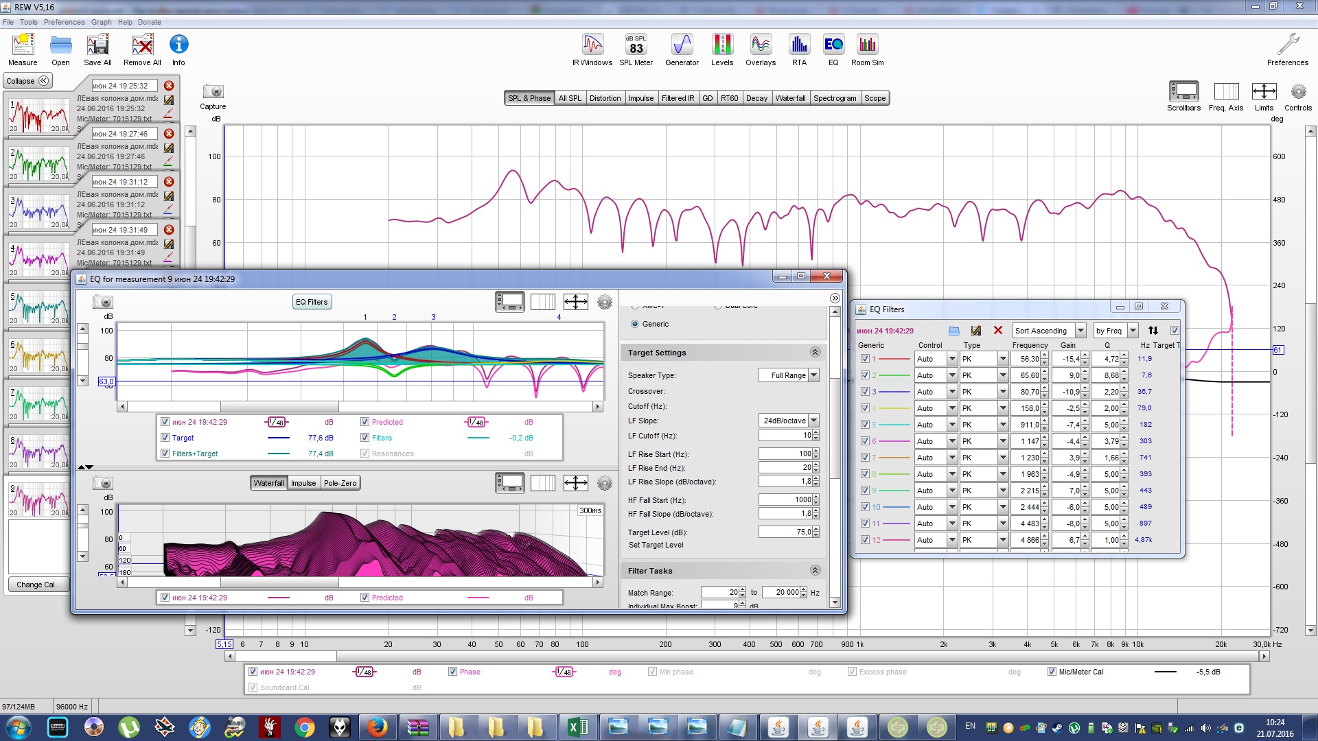Промерил каждый динамик белым шумом, замеры импортировал в тхт. В рефэйз файлы не открываются, пишет инвалид аргумент.