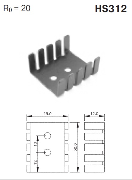 Размеры радиатора 26*11 мм, HS312 влезет, если чуть рёбра разогнуть. Переделал плату. Кстати, при трассировке платы предусмотрел установку резисторов в корпусе ТО220 в качестве истоковых в ВК.