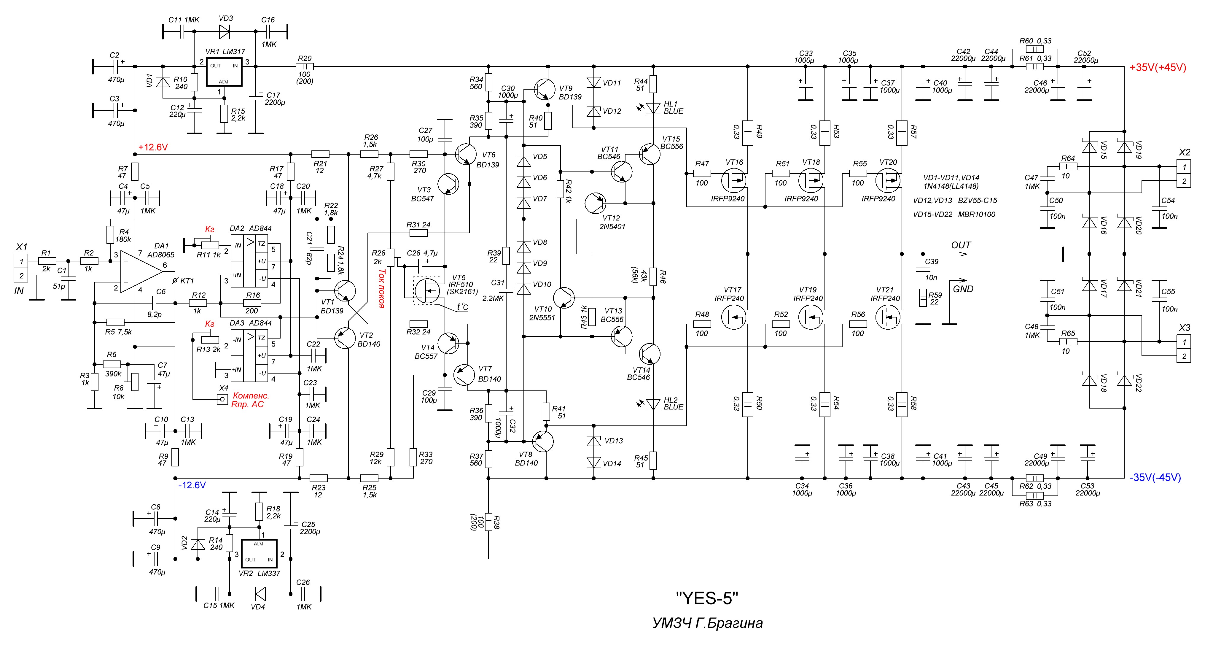 Думаю " изюминкой " YES - 5 можно считать применение корректора НИ на популярной МС AD844 .