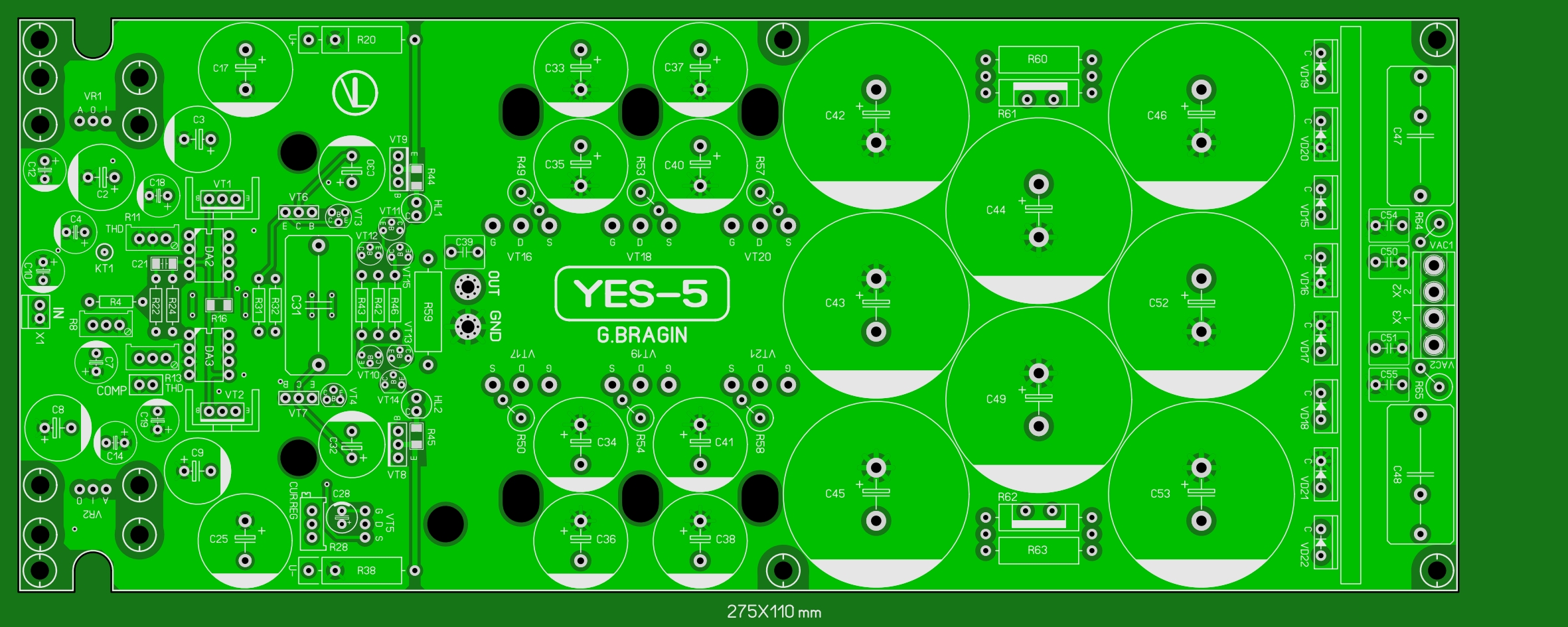 Владимир, на плате отверстия для крепления стабов получились спорными. Их либо от края чуть дальше отодвинуть, либо выфрезеровать по аналогии с рисунком ниже. Или вообще убрать, если планируется внешний радиатор.