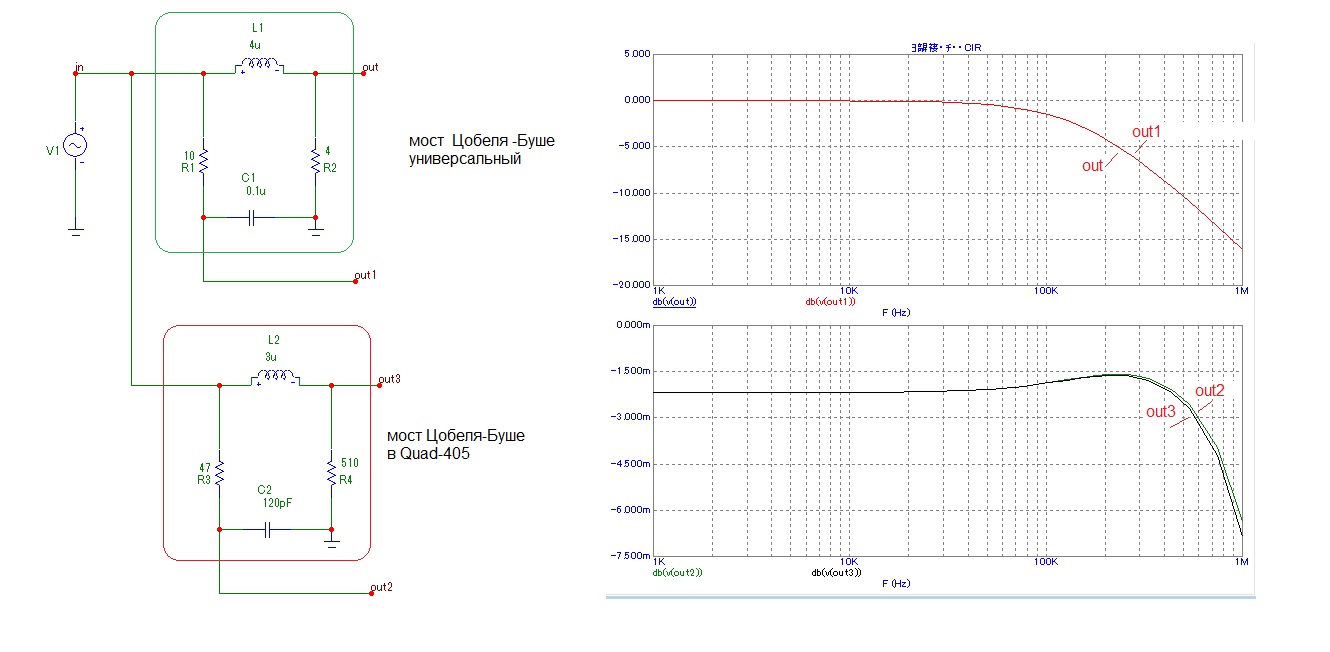 а так, вот модель в симуляторе, где в качестве сравнения привел мост Цобеля-Буше примененного в QUAD-405 и т.д....