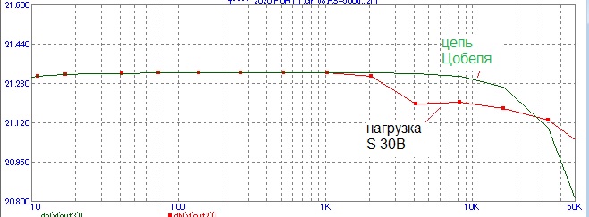 мост Цобель-Буше к выходу усилителя крепится, пересчет номиналов получается из недостаточной линейности импеданса нагрузки