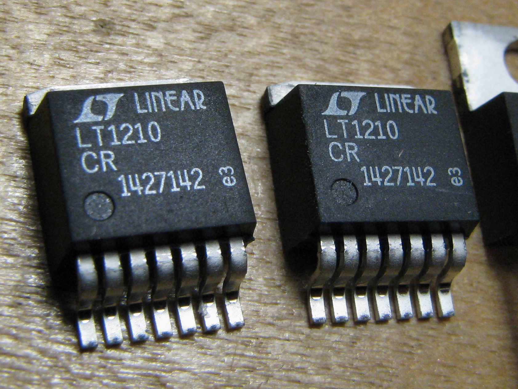 с моими китайскими LT понятно, но чтобы полностью отбросить в качестве признака оригинальности наличие несимметричности по входам, желательно подтверждение того, что те (корпуса D-pack), у которых входы меряются симметрично, выдадут ток 1A( в противном случае можно считать, что мои китайские - это подмена корпуса и не существует двух разных топологий у официальных кристаллов LT1210). Не нашел у Linear кодировку datacode, чтобы понять по фото Ulis какая разница в дате производства у D-pack и TO-220, но нашел документ www.linear.com/docs/39196 где в начале указаны малайзия и таиланд как место упаковки в корпус TO-220.