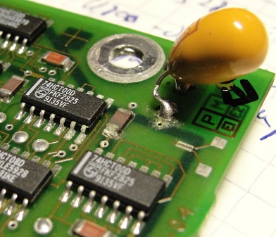 ID:	213571Видны окислы паек, но их совсем немного От Вас, Анатолий, звучала фраза, что не стоит пропаивать, то, что не рыхлое. Позволю не согласиться. Электролит редкостная гадость, он может скопиться из-за поверхностного натяжения в месте соприкосновения выводы и контактной площадки с внутренней стороны и делать своё "черное дело". Сверху всё вроде ничего, а "проест" припой между ногой и КП - и вот тебе нестабильный контакт. Поэтому - пропаивать, но без фанатизма.