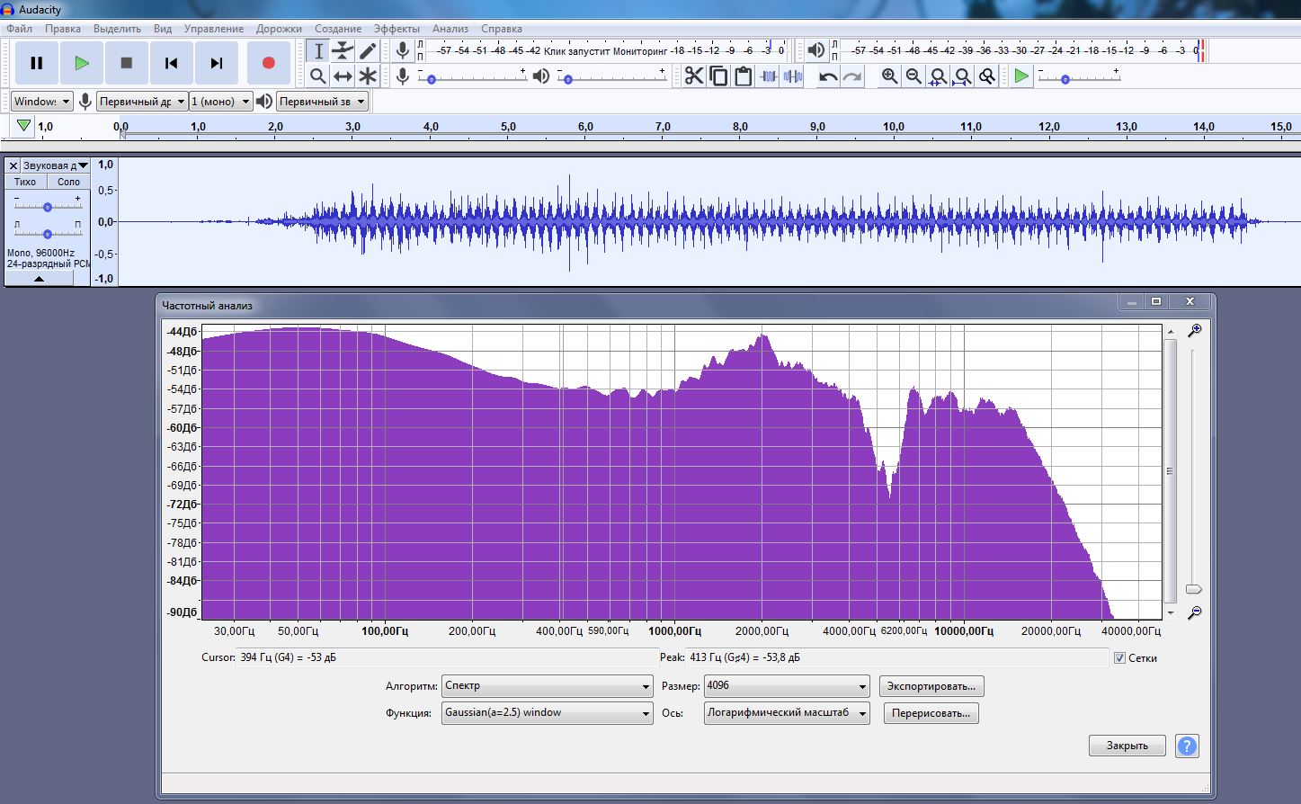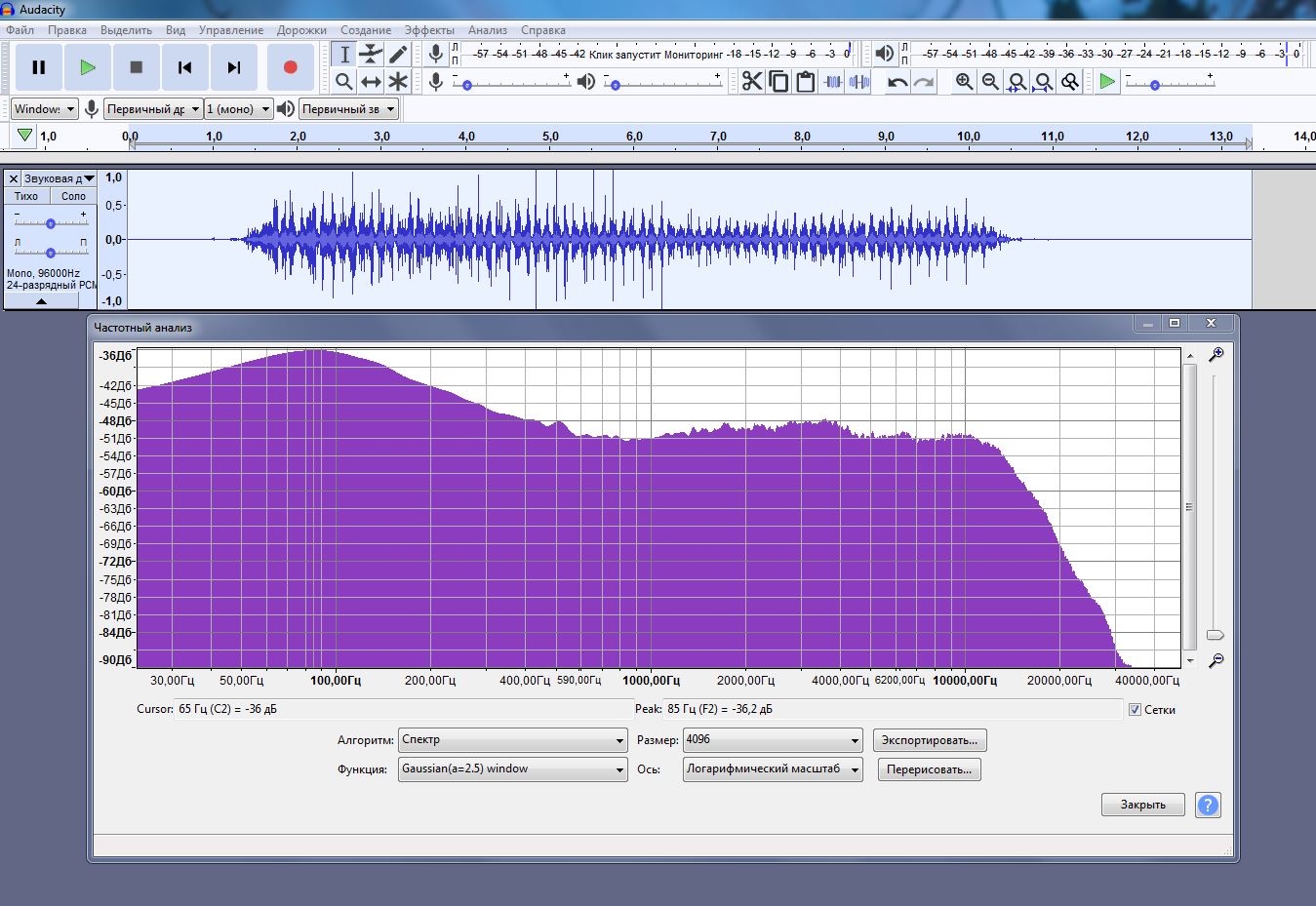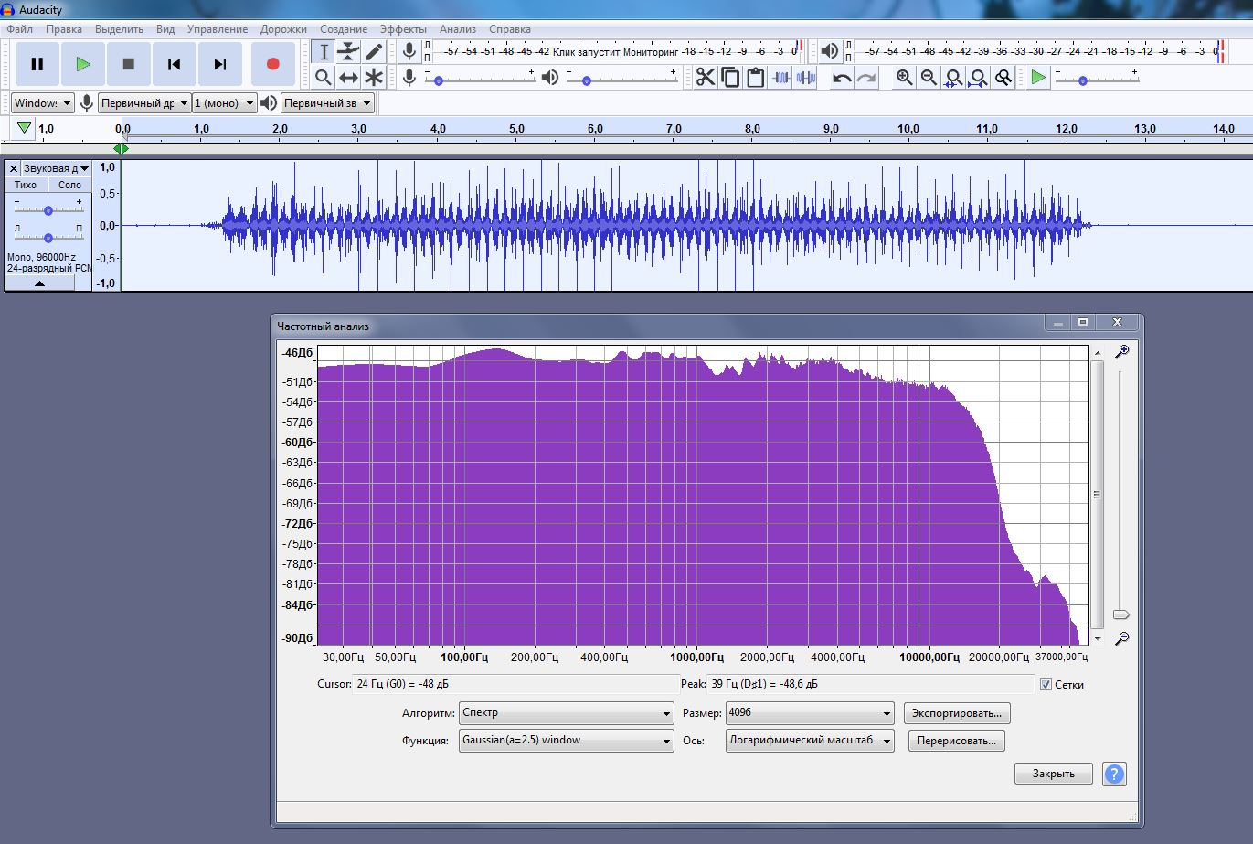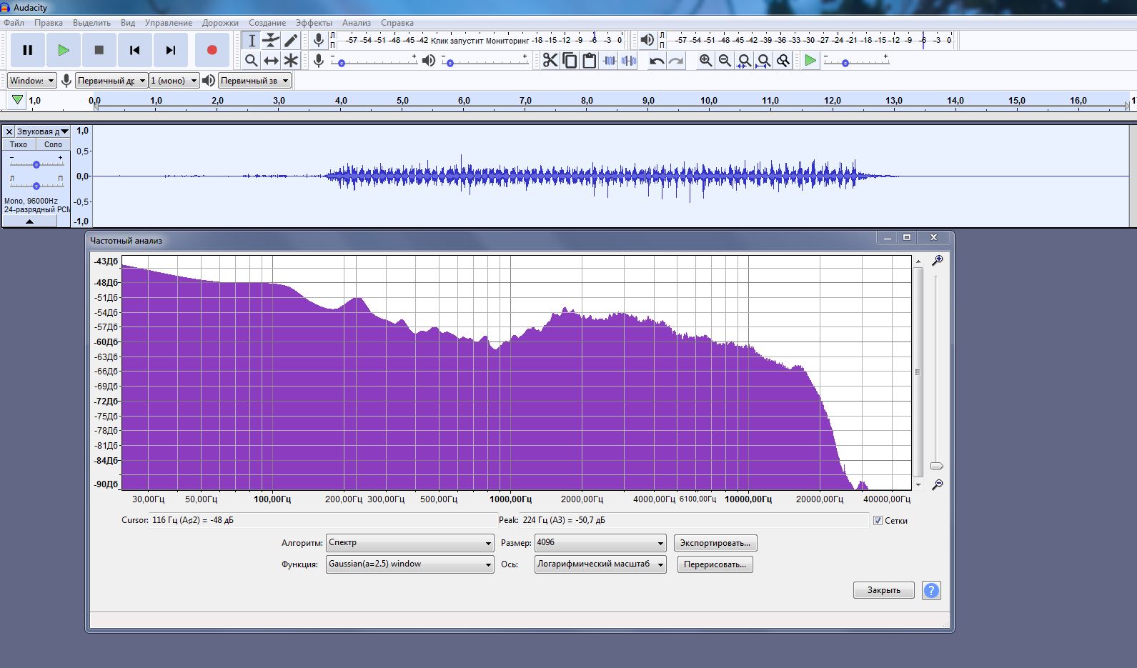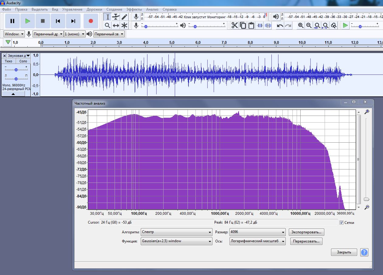 Вот спектр левого канала у вас
