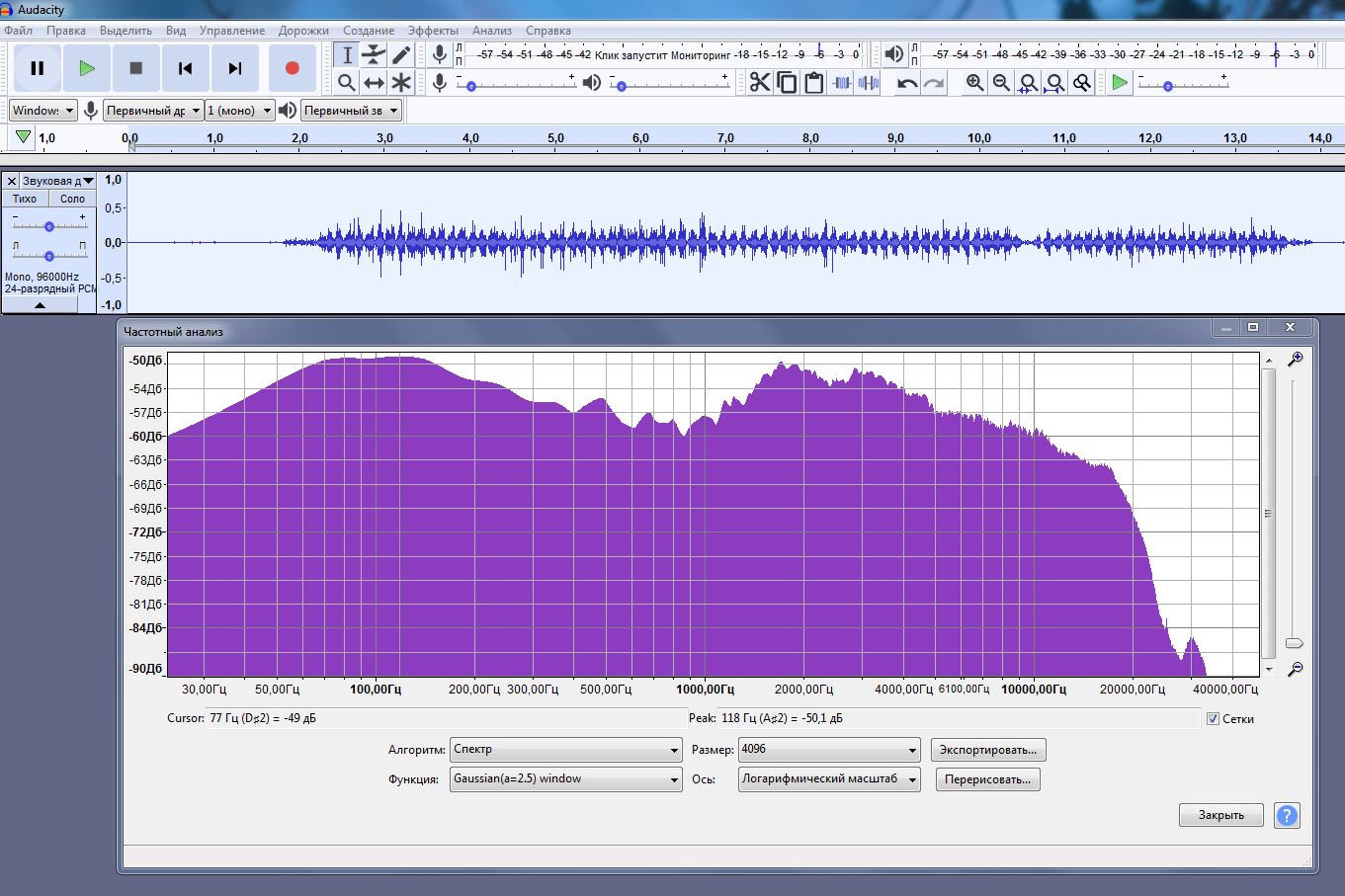 В аудасити -Анализ-Построить график спектра