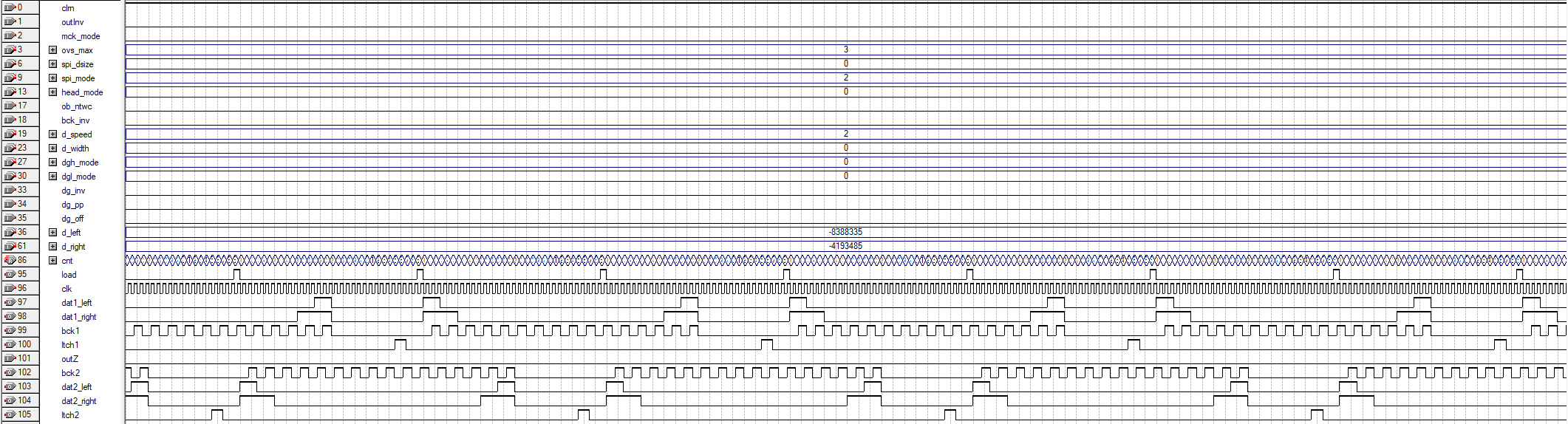 И не будет играть. Это потому, что LE шириной более 1 битклока. У тебя сейчас ширина LE равна 2-м битклокам. Видишь? Что-то ещё не так в spi_gen.v