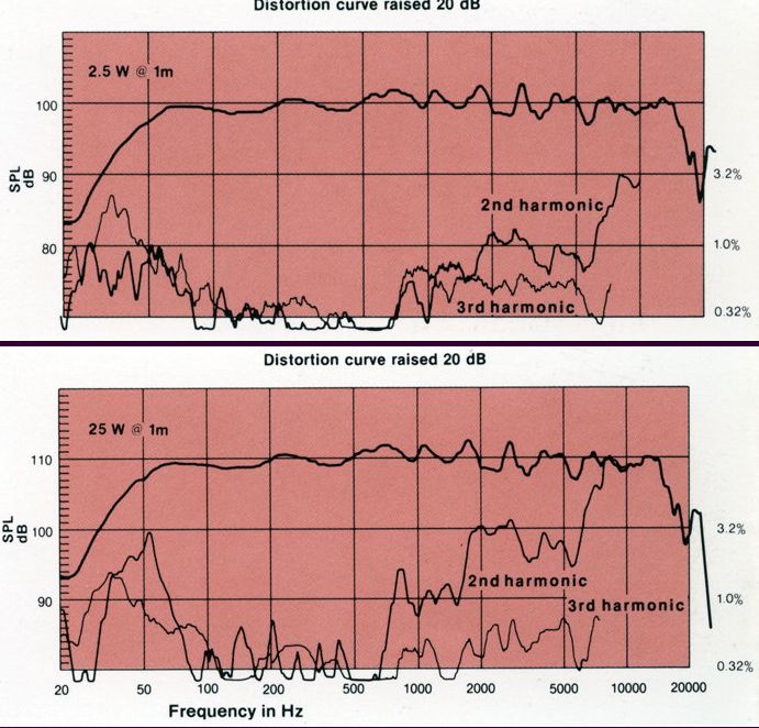 "В современных АС достигнуты нелинейные искажения в области частот до 1 кГц порядка 1%, в области частот выше 1 кГц примерно 0,5%"