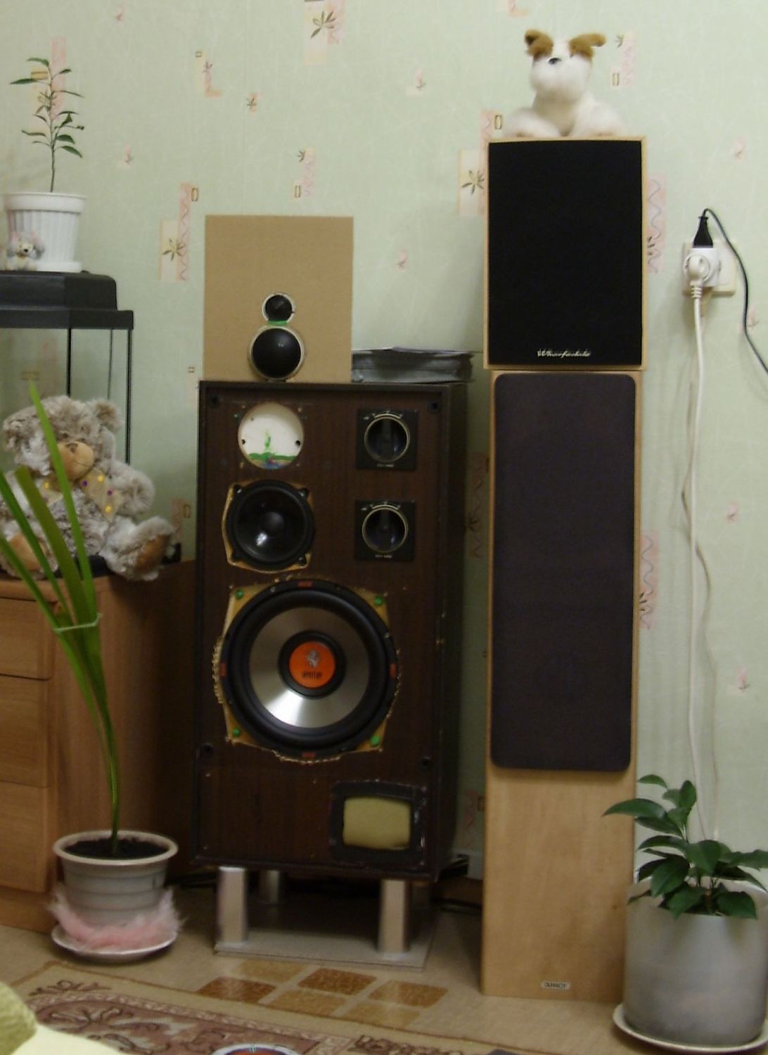 Жаль вот я сам не имею права по настоящему оценить звук своих АС - я всё таки лицо заинтересованное , но вообще их звучание в савокупности с самостоятельным изготовление даёт положительное впечатление, только не подумайте что это первый приличный звук в моём доме - сзади, на противоположной стороне комнаты стоят Таннои - уже просто стоят , а сбоку четырёхполоска, правда немного недоделана, но уже играла.