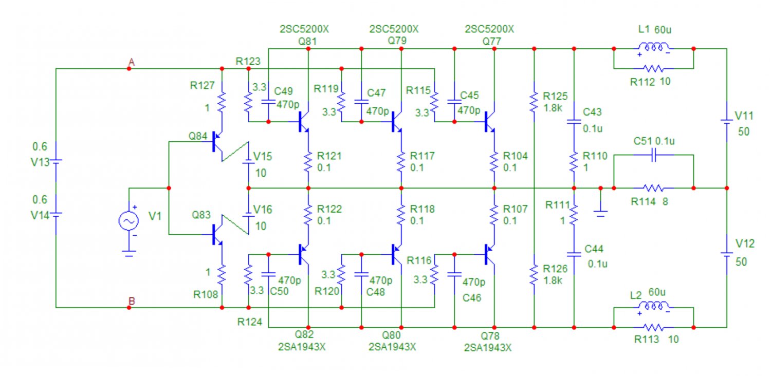 Интересно , кто-нибудь пробовал экспериментировать с такой топологией УНЧ ? Схема взята отсюда , исключены только цепи защиты : https://forum.vegalab.ru/showthread....B5%D1%82%D0%B8 , я её делал для регенератора сети , отсюда и такой мощный выход .... но потом , ради опыта , попробовал этот усилитель и для музыки . Результат оказался на удивление приличным и заслуживающим дальнейшей разработки , но сейчас , из-за нехватки времени , я эту тему пока отложил . Сейчас мне интересно чисто теоретически подумать - насколько такая схема перспективна для высоколинейного УНЧ ? Что скажут любители схемотехники ?