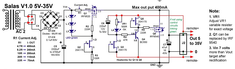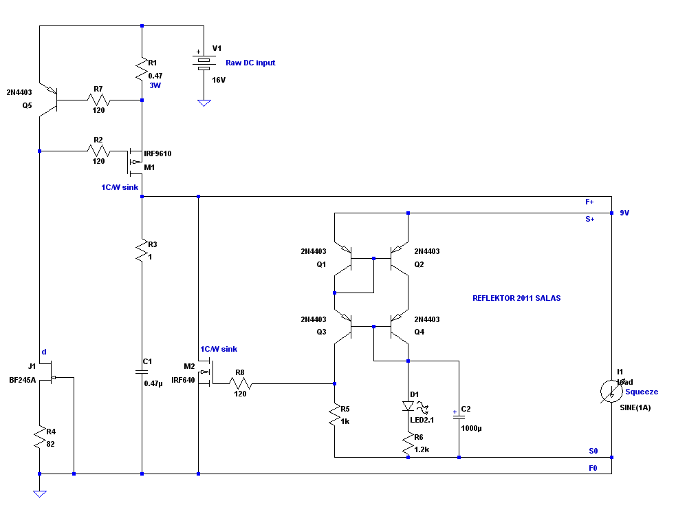 Ну если не брать в расчет маркетинговые цели, то в обоих позициях сравнительно дорогие 2sk170 можно заменить (Q3 нельзя, тут на Rsense уже высадится Vbe, собственно его и использовать) на простой ограничитель тока из пары подходящих биполяров типа BC550/BC850 или 2N3904/3906: