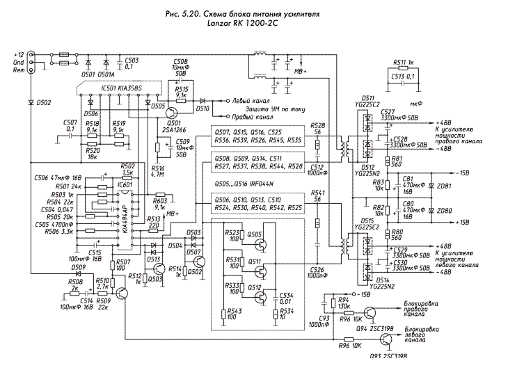Итак, имеем схему БП усилителя, выпускаемого промышленно. Что думается- два трансформатора, один под мощного потребителя, около 400Вт, другой- маломощный, ватт 50-80. Первый для питания выходных каскадов или модулей импульсных усилителей, другой- для УН либо для питания оперов.